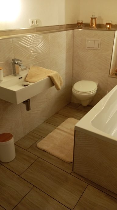 Endergebnis: Fussboden im Bad komplett neu, Dusche fachgerecht abgedichtet und neu gefliest