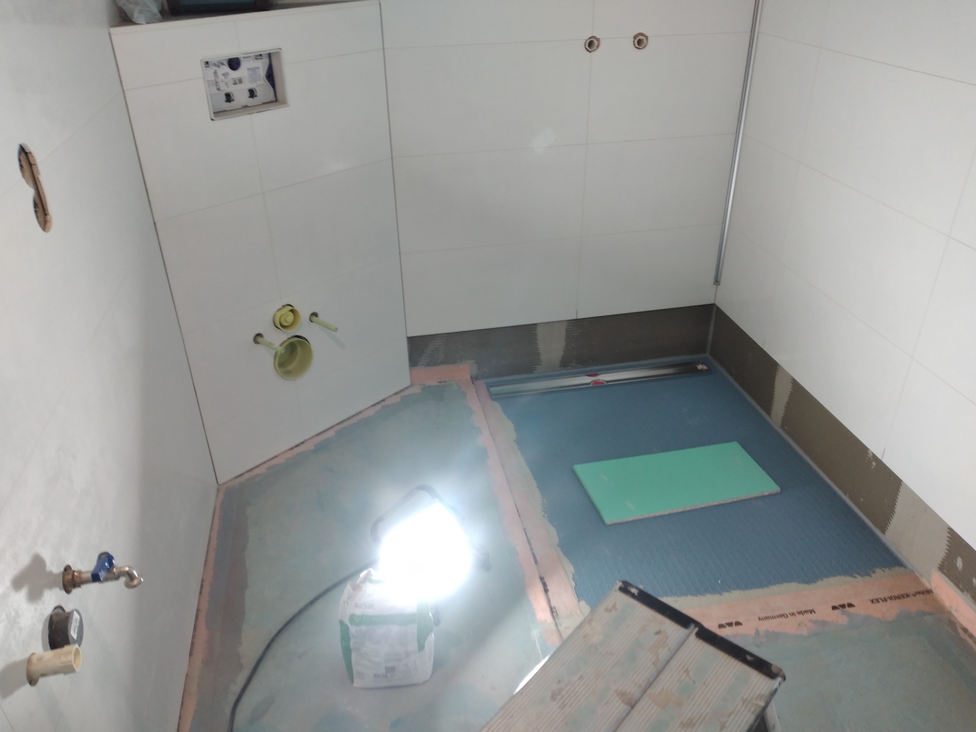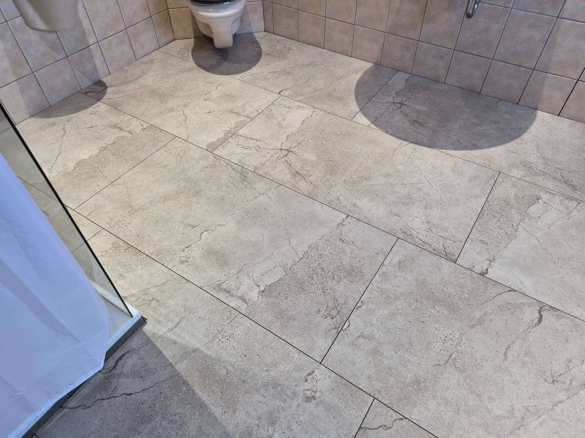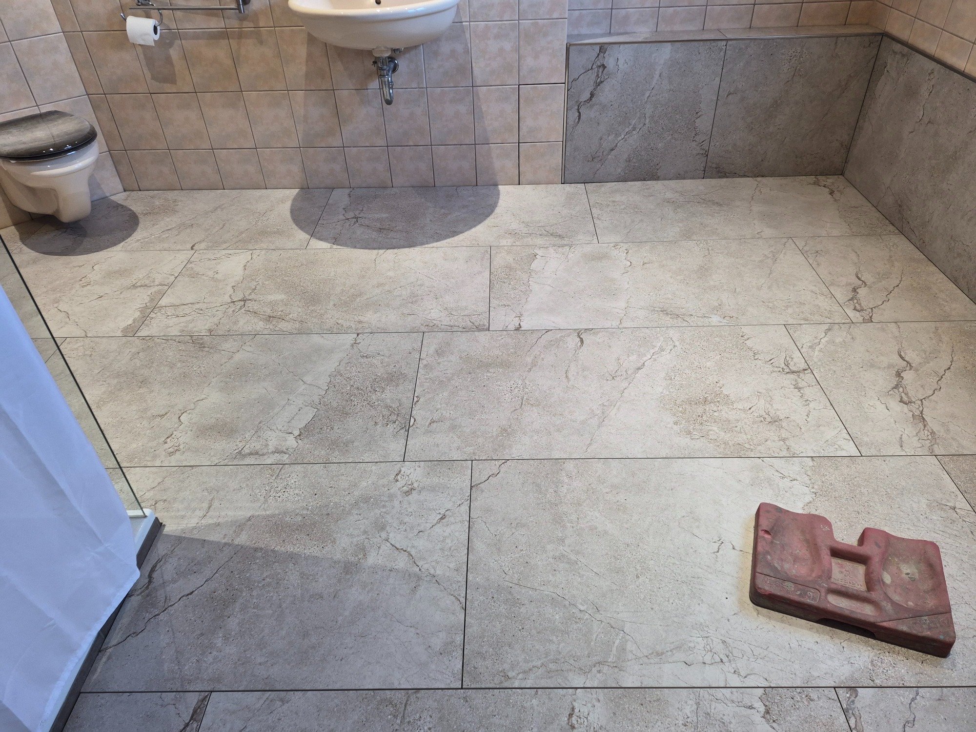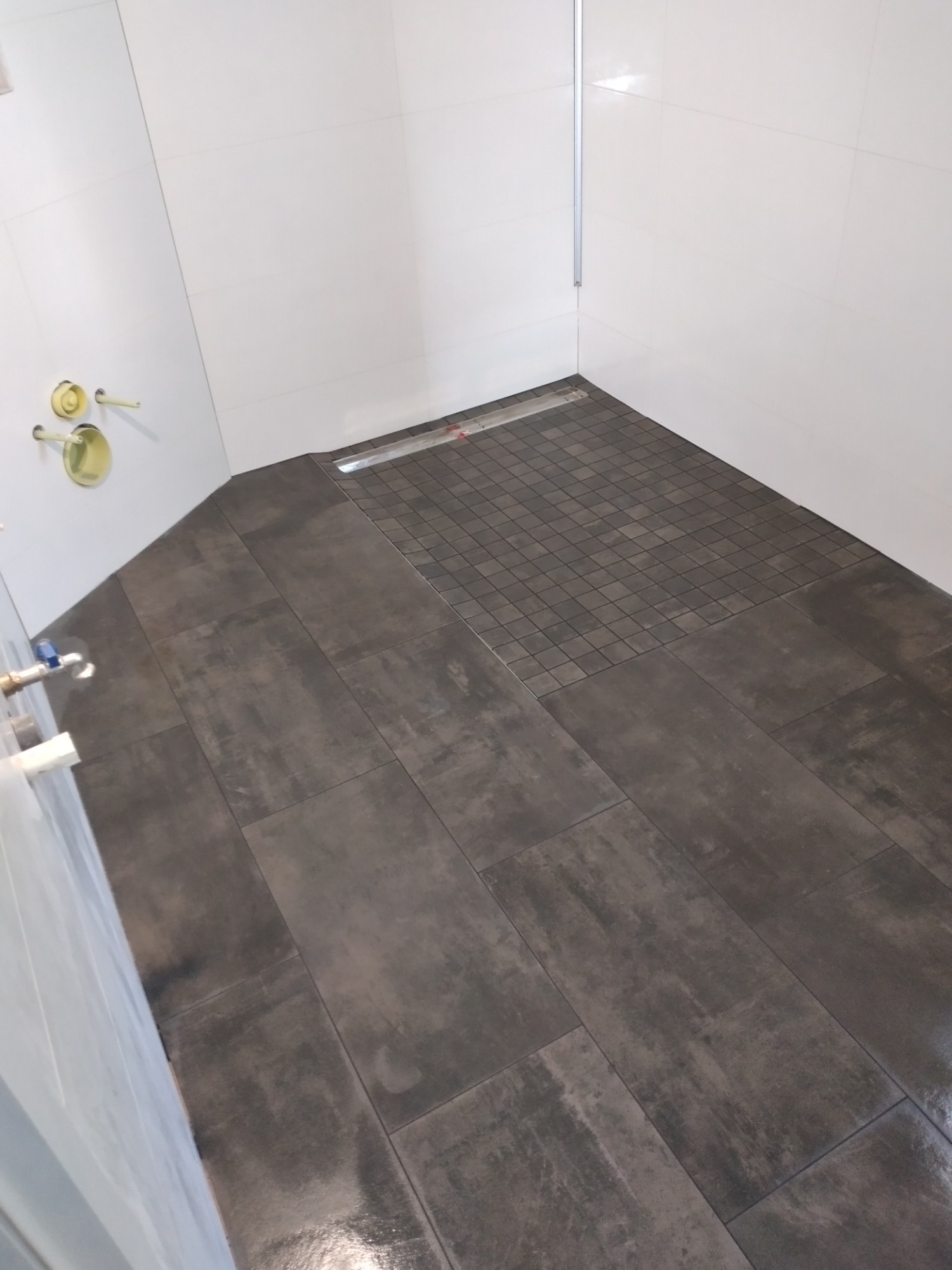 Endergebnis: Fussboden im Bad komplett neu, Dusche fachgerecht abgedichtet und neu gefliest