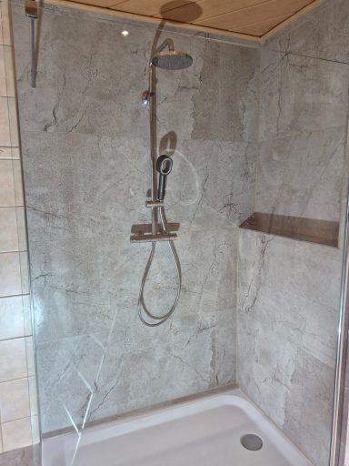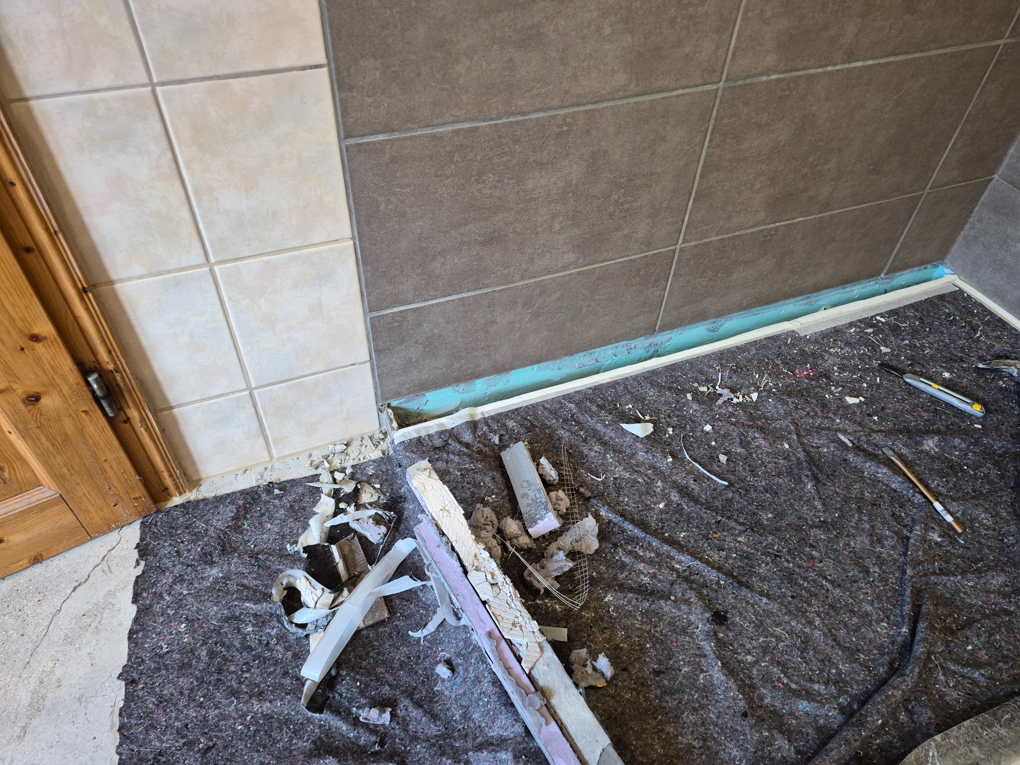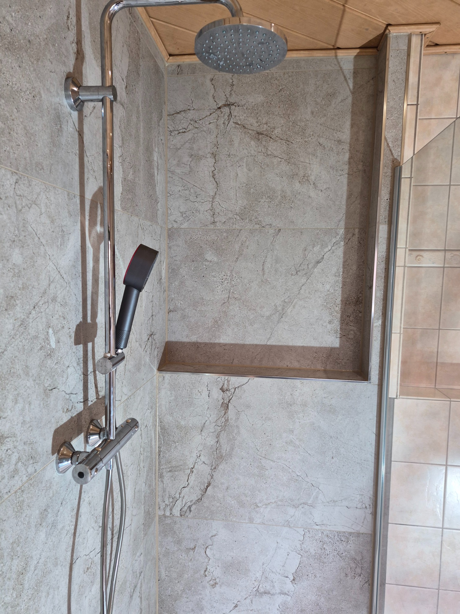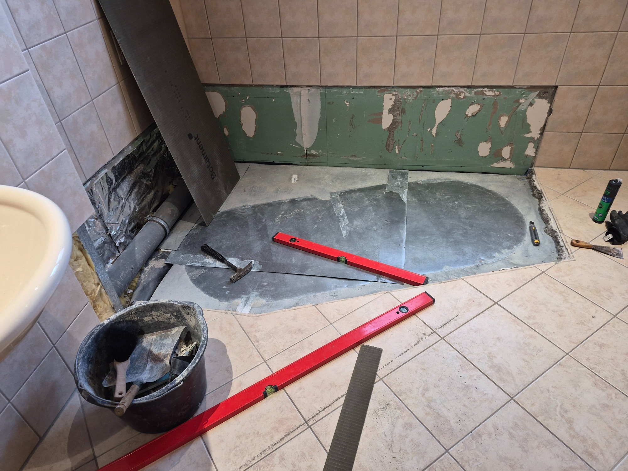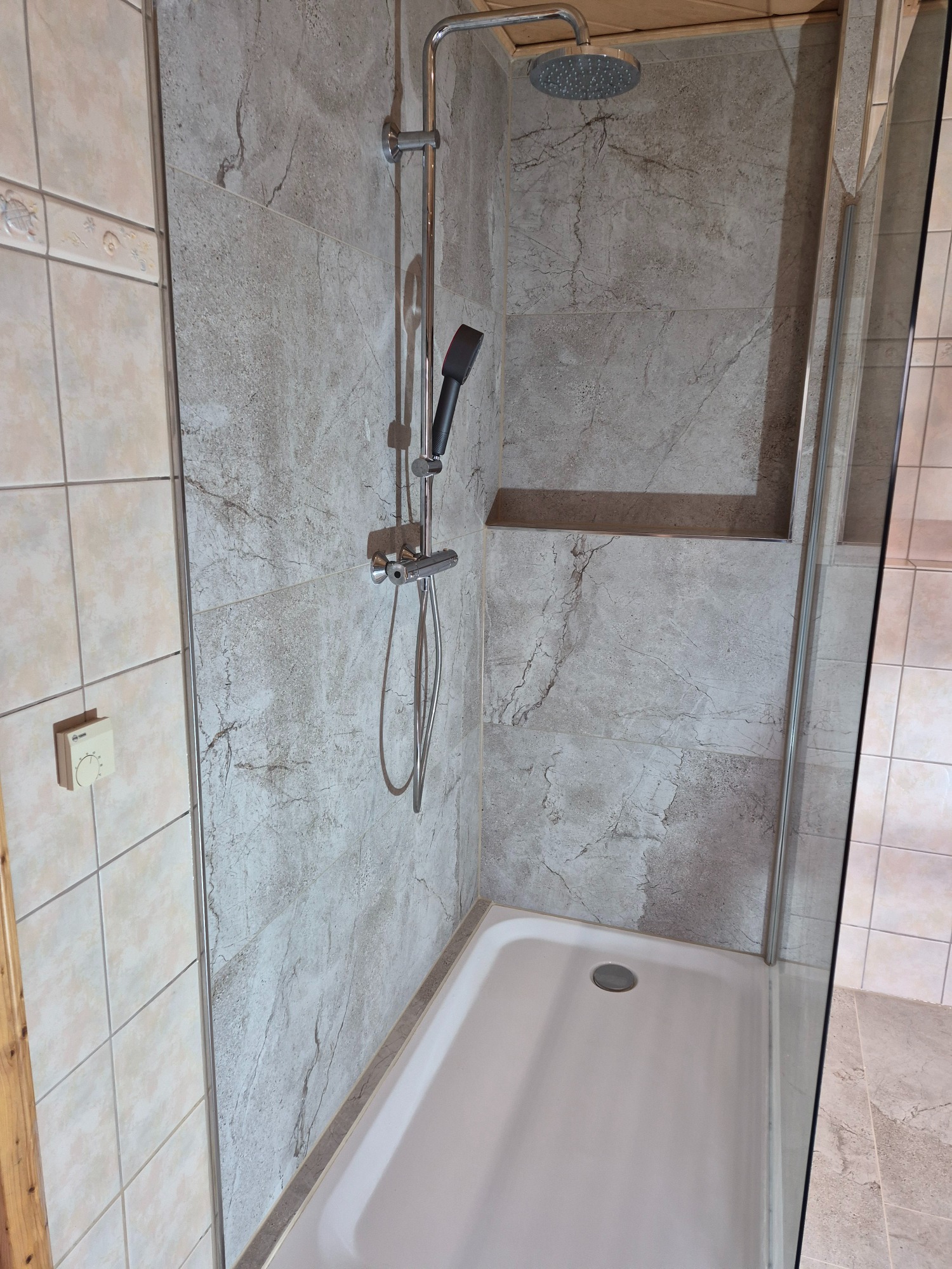 Endergebnis: Fussboden im Bad komplett neu, Dusche fachgerecht abgedichtet und neu gefliest