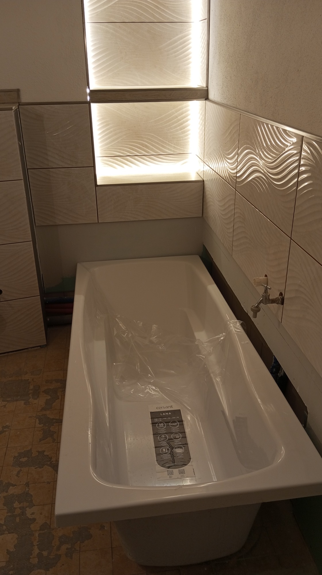 Ursprünglicher Plan: das "Loch" der Badewanne überfliesen und an der Dusche Silikon erneuern